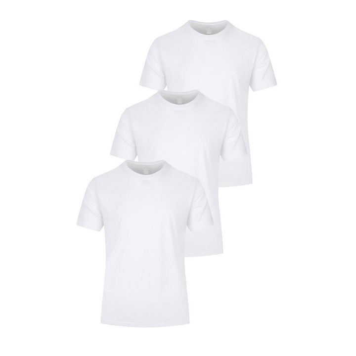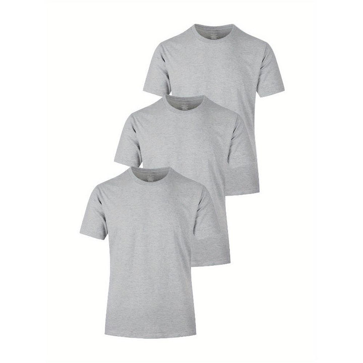 This 3-pack of men's cotton T-shirts offers a versatile wardrobe staple crafted from breathable, all-season knit fabric with a slight stretch for enhanced comfort.