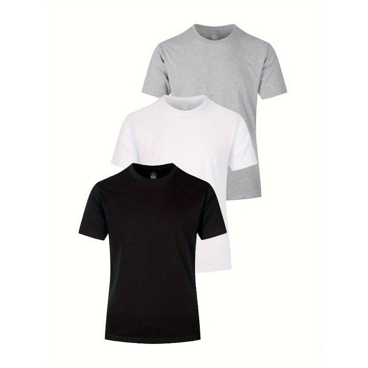 3-Pack Men'S Cotton T-Shirts - Solid Crew Neck Short Sleeve Tops, All-Season Casual Knit Fabric Tees Slight Stretch, Regular Fit for Mature Occasions