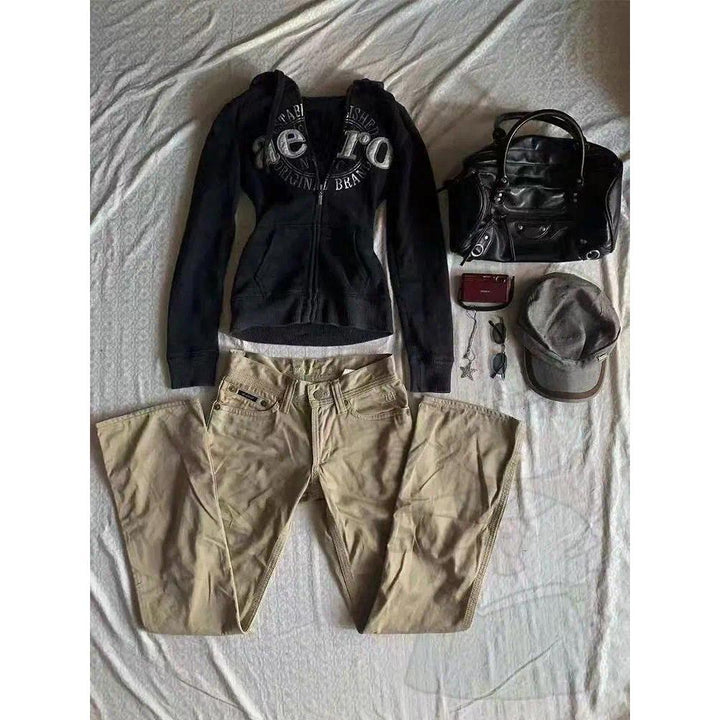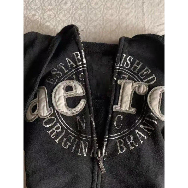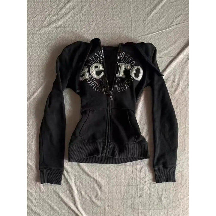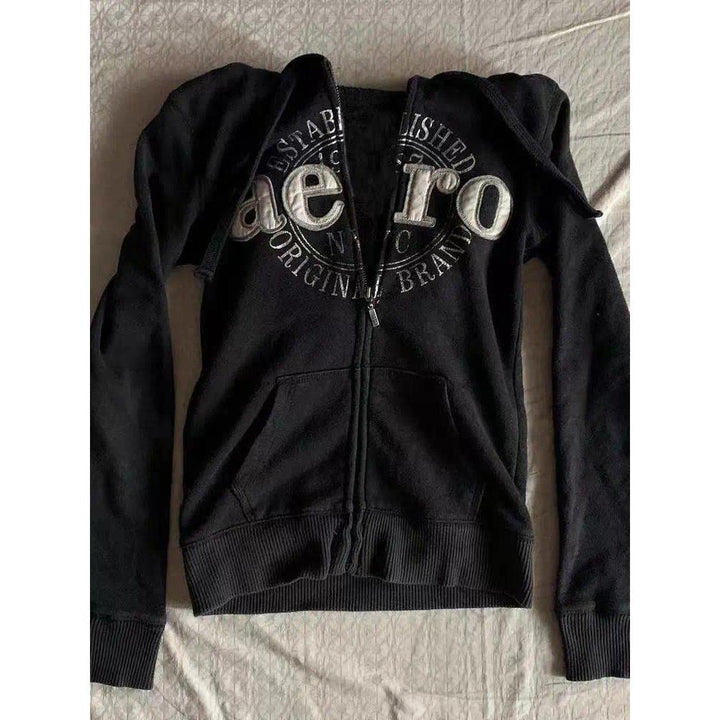 American retro hoodie women vintage design black hoodies women casual jacket autumn y2k tops new grunge versatile sweatshirts