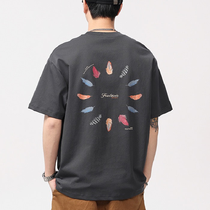 This American retro short-sleeved T-shirt combines classic style with durable comfort. Crafted from heavy cotton, it offers breathability and resilience, ideal for summer wear. Its casual design and new print make it a versatile addition to any man's wardrobe, perfect for relaxed outings or everyday use. The half-sleeve cut ensures ease of movement while maintaining a timeless look.