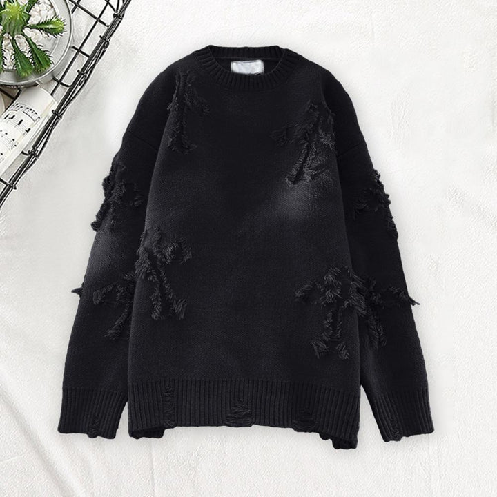 This vintage-style casual sweater combines a ripped knitted design with a loose fit, embodying hip hop streetwear aesthetics.