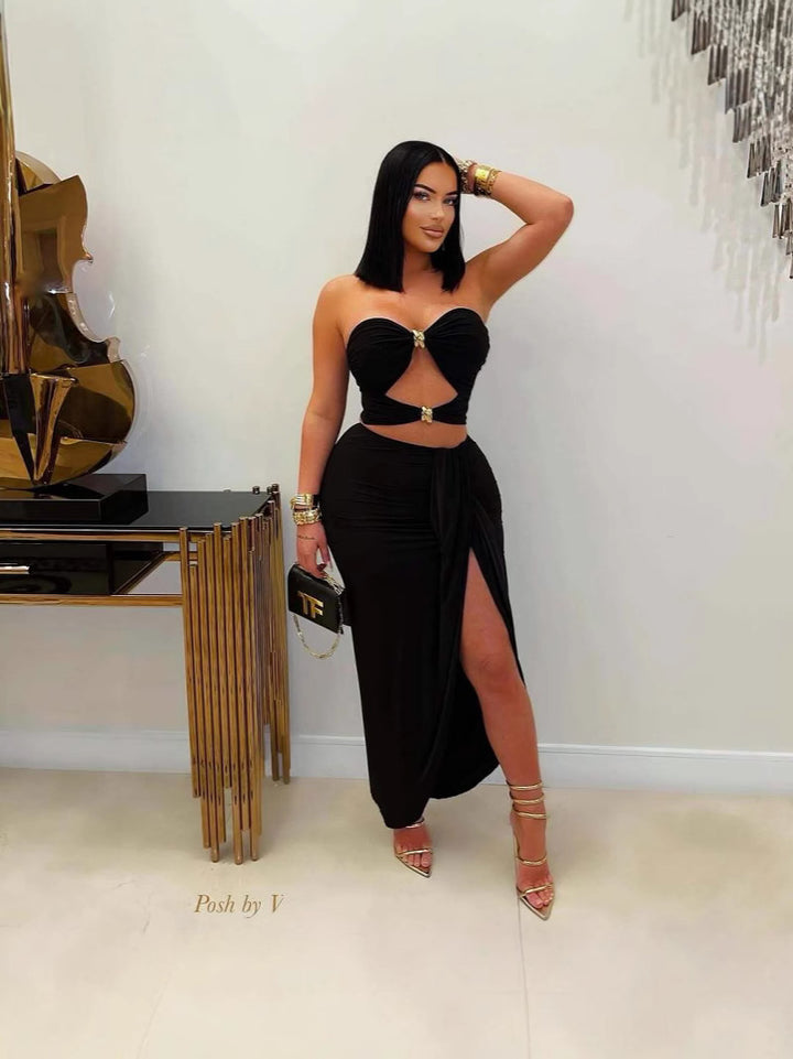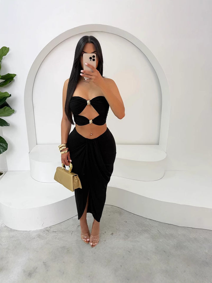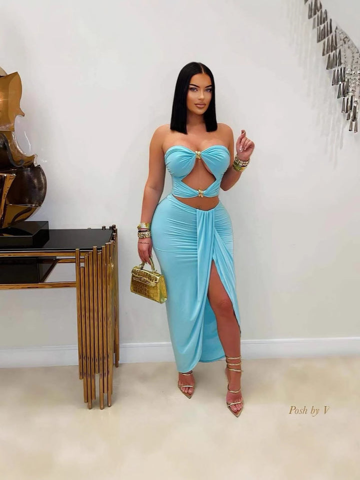 This solid color summer skirt suit combines elegance with a flattering, sexy silhouette, perfect for warm-weather occasions.
