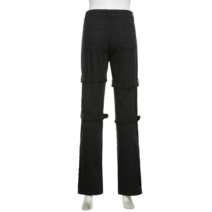 These gothic black cargo pants blend Y2K grunge aesthetics with vintage hip hop and punk influences, creating a bold statement piece for streetwear enthusiasts.