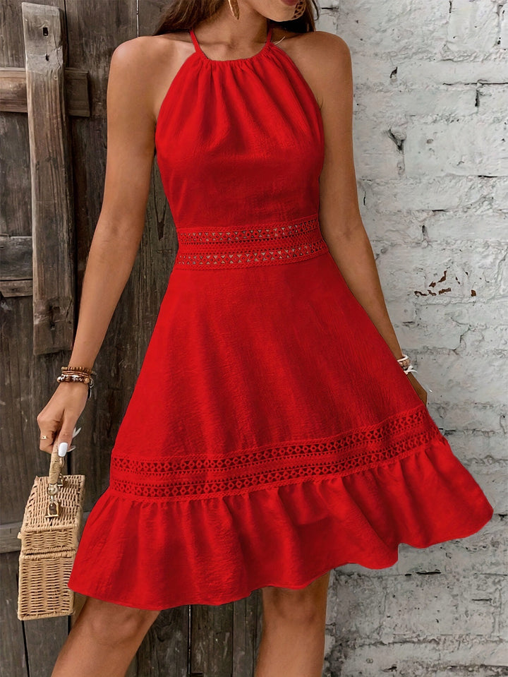 Lace lace dress, solid color, atmosphere, seaside beach dress, vacation sleeveless casual dress