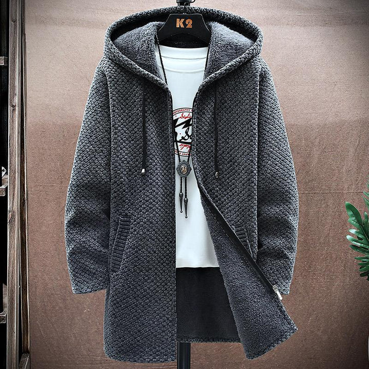 Men's Cardigan Cashmere Long Coat Sweaters with Hoods Autumn Winter New Fleece Warm Solid SweaterCoat Windbreaker Men Clothing