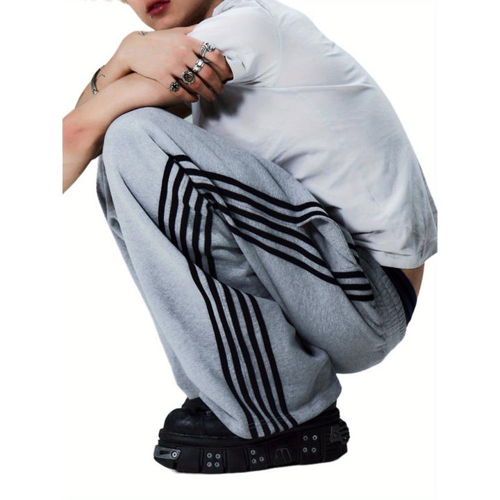 Men's Casual Striped Sweatpants with Elastic Waistband - Comfy, Loose-Fit Wide Leg Pants for All Seasons