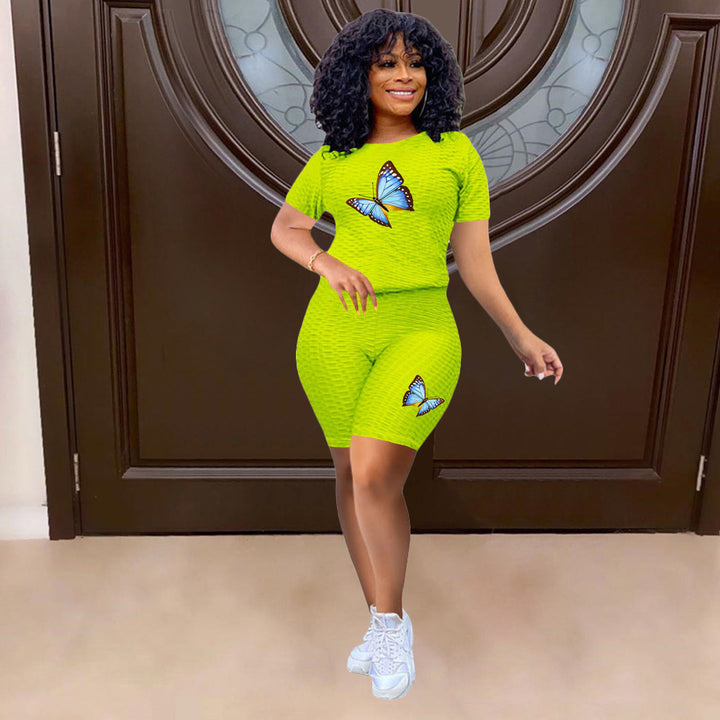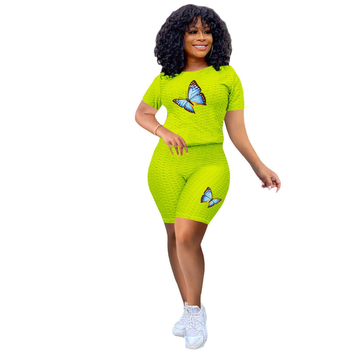 Experience ultimate comfort and style this summer with our women's butterfly print yoga outfit.