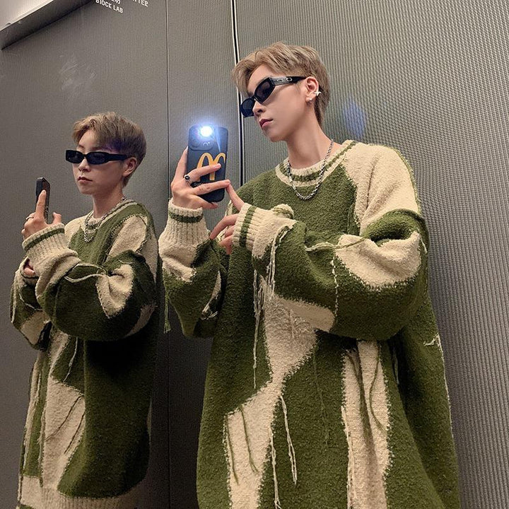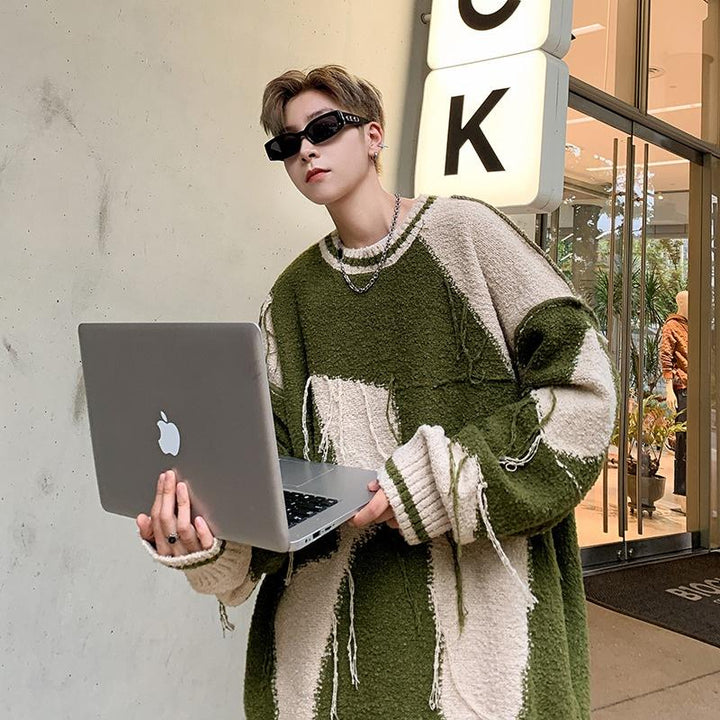 This New Vintage Ripped Sweater combines classic streetwear with distinct Harajuku-inspired tassel accents, offering a bold, textured look.