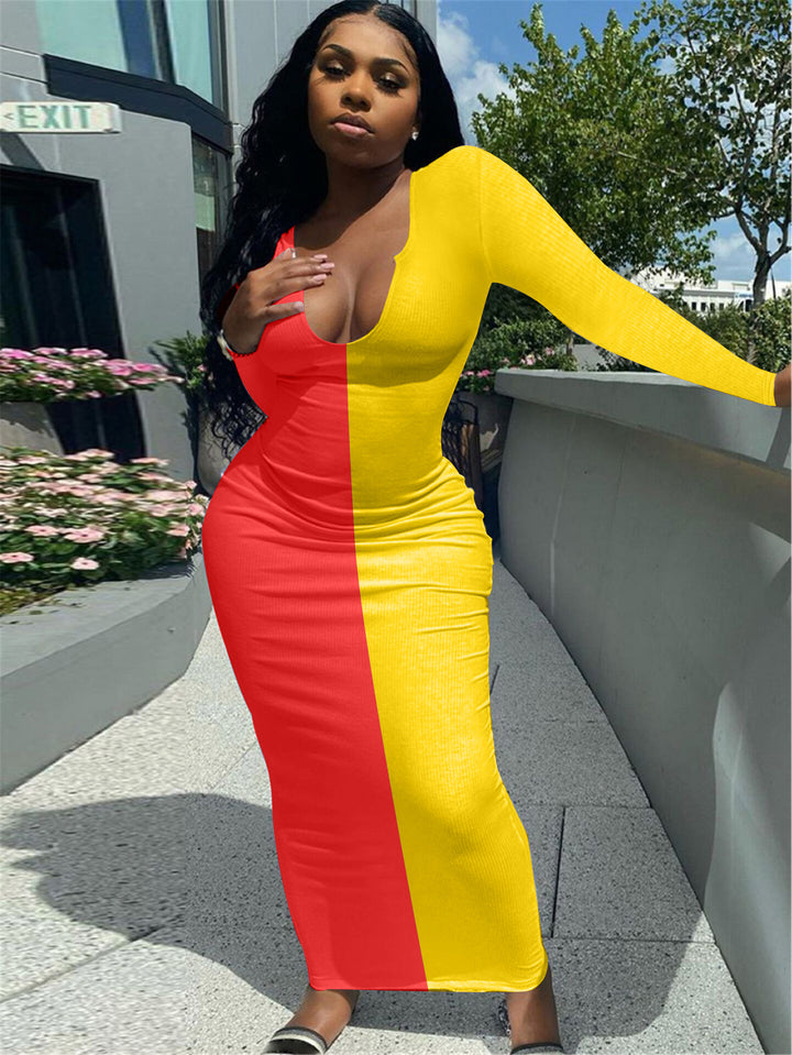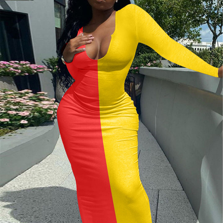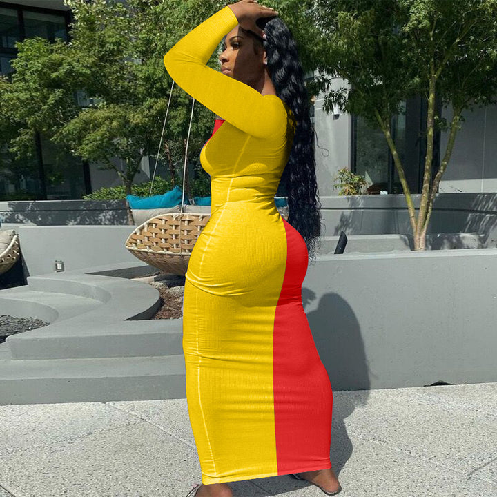 This new women's fashion patchwork dress combines contemporary style with artistic design.
